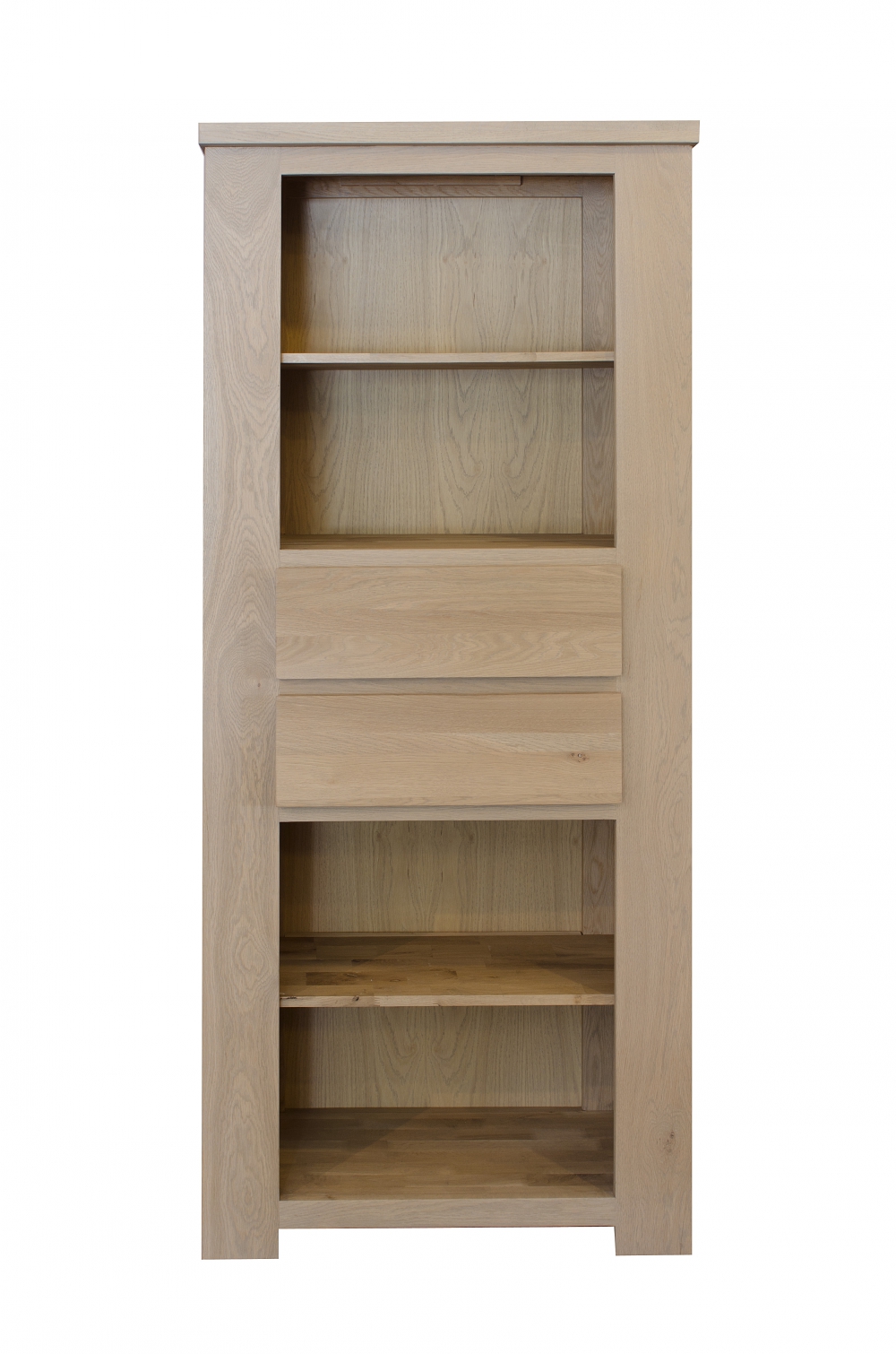 Boekenkast Narvick is strak afgewerkt in nagenoeg foutvrij eiken. Kenmerkend voor Narvik zijn stakke lijnen