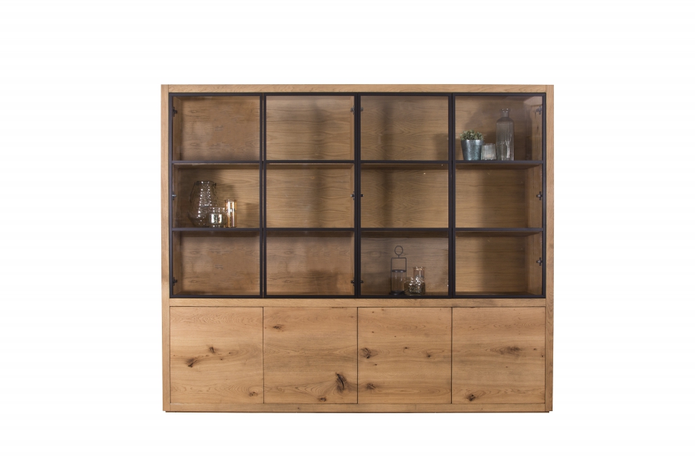 Vitrinekast Sirolo Eikenhout & stalen deuren